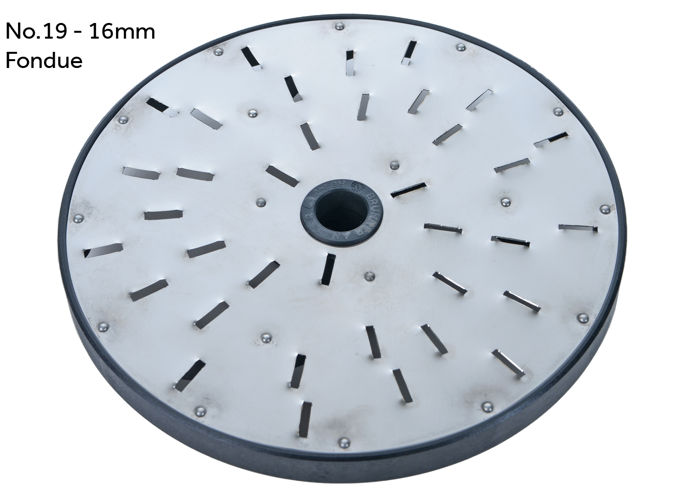 No.000 – 13mm No.00 – 11mm No.0 – 9mm No.1 – 7mm No.2 – 6mm No.3 – 5mm No.4 – 4.2mm No.7 – 3mm No.9 – 2.5mm No.11 – 2mm No.12 – 1.8mm No.14 – Parmesan No.17 – Curly No.18 – Fondue 12mm No.19 – Fondue 16mm No.23 – Universal 2.5mm